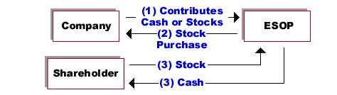 3. ESOP Purchases stock from company or shareholders. 3. Company increases cash flow, ESOP purchases company stock from shareholders. (Tax deferred sale to shareholders if requirements met.)